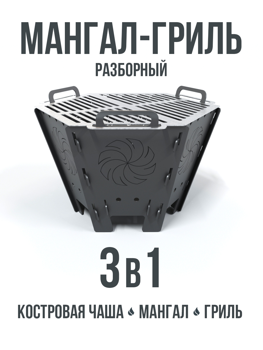 - Разборная конструкция: мангал легко собирается и разбирается, занимает минимум места при хранении и транспортировке.